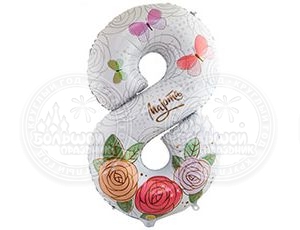 Фольгированный шар-цифра 8! Эффектное обозначение праздника!