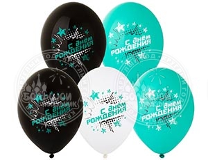 14" (Belbal) шелкография С ДР Звезды бирюзовые