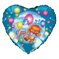 / FM Сердце С днем рождения Мишка с шарами 18"/45 см