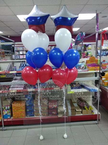 1 Фонтан из:1 шт. Звезда Триколор 18"/45см6 шт. шар пастель 1 шт. грузик.