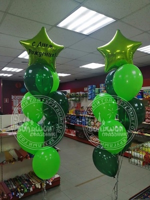 2 Фонтана из:2 шт. звезда фольга1 шт. наклейка7 шт. шар пастель,7 шт. шар кристалл2 шт. грузик