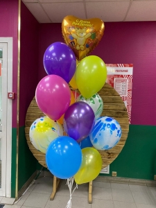 1 Фонтан из:1 шт. сердце фольга с рисунком8 шт. шар пастель2 шт. шар металлик 3 шт. многоцветный пастель1 шт. шар кристалл1 шт. грузик