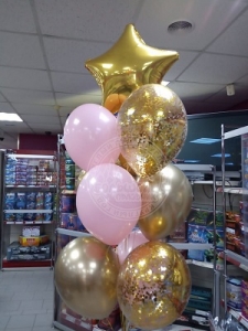 Фонтан из: 1 шт. звезда 2 шт. шар с конфетти 3 шт. шар пастель 3 шт. шар хром 1 шт. грузик