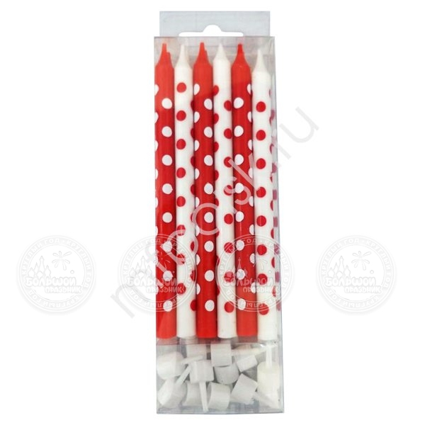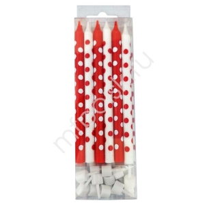 / MС Свечи Красные и белые в горошек 12шт с держ. 12см