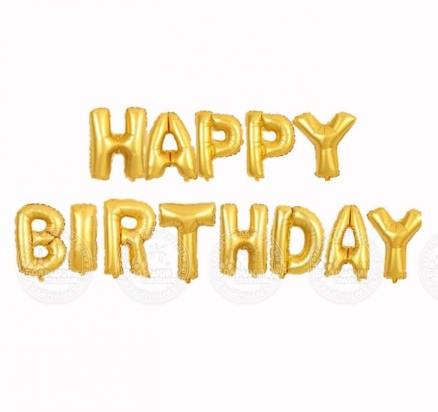 Главная / Шары из фольги с гелием / Фольгированные фигуры / Шар фольга Happy Birthday GOLD