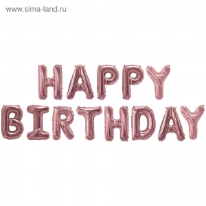 Главная / Шары из фольги с гелием / Фольгированные фигуры / Шар фольга Happy Birthday Rose Gold буквы