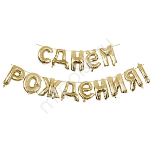 Шар фольга  С Днем рождения GOLD 40см буквы