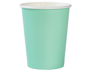 Бумажный стаканчик мятного цвета объемом 250мл. Используется совместно с другими элементами коллекции по дизайну (тарелки, приборы, скатерти и т.п.).