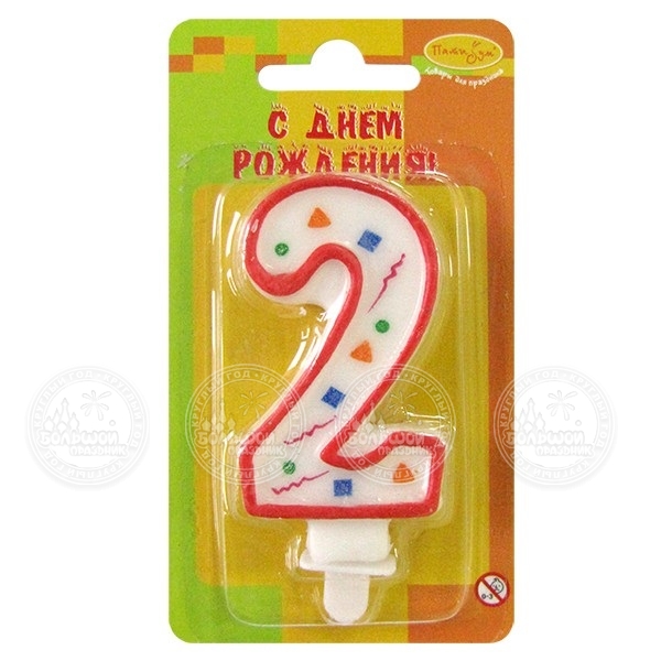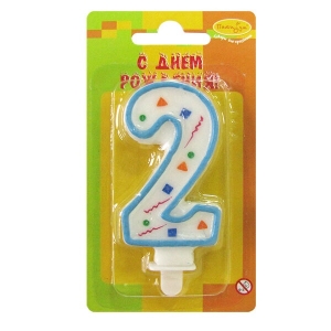 / Свеча Цифра 2 Голубое конфетти