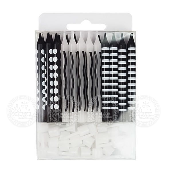 / Свечи Черные ассорти 6см 24шт с держат.