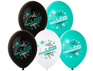 14" (Belbal) шелкография С ДР Звезды бирюзовые