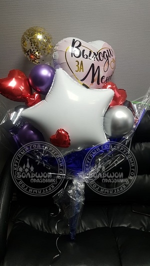 Букет состоит из фольгированных шаров разных форм и цветов, надутых воздухом. Может быть абсолютно любой тематики и цветовой гаммы. С таким букетом можно пойти на День Рождения, на выписку из роддома, на 1 сентября, на День Учителя. Его можно подарить маме, любимой девушке, подруге, мужу, директору и т.п.