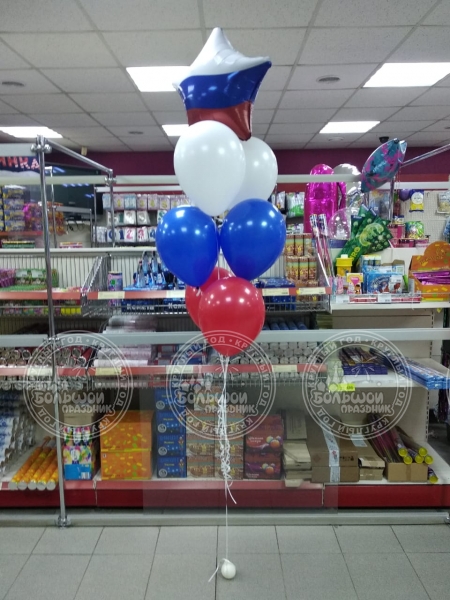 1 Фонтан из:1 шт. Звезда Триколор 18"/45см6 шт. шар пастель 1 шт. грузик.