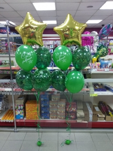 1 Фонтан из:1 шт. Звезда фольга2 шт. 23 ФЕВРАЛЯ3 шт. Камуфляж1 шт. грузик