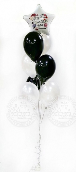 Фонтан из:1 шт. звезда с рисунком 3 шт. шар пастель4 шт. шар металлик1 шт. грузик
