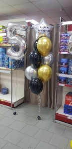 Фонтан из:1 шт. цифра1 шт. звезда с рисунком3 шт. шар пастель5 шт. хром2 шт. грузика