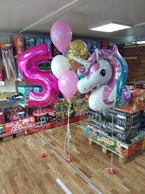 Фонтан из:1 шт. цифра фольга1 шт. фигура фольга3 шт. шары пастель2 шт. шар с конфетти3 шт. грузика.