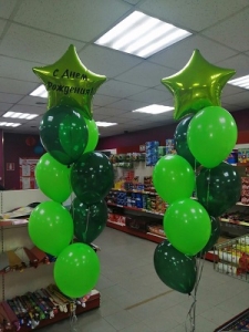 2 Фонтана из:2 шт. звезда фольга1 шт. наклейка7 шт. шар пастель,7 шт. шар кристалл2 шт. грузик