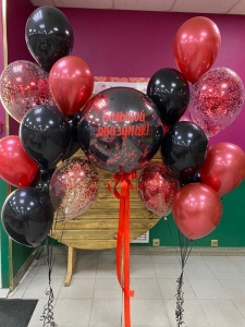 1 Фонтан из:1 шт. большой шар с наклейкой и конфетти.8 шт. шар пастель6 шт. шары хром.4 шт. шар с конфетти3 шт. грузик