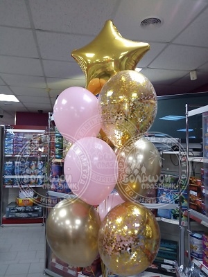 Фонтан из: 1 шт. звезда 2 шт. шар с конфетти 3 шт. шар пастель 3 шт. шар хром 1 шт. грузик