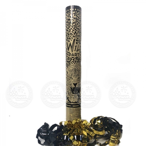 / Пневмохлопушка 30 см ЧЕРНЫЙ/ЗОЛОТО Wild Party серпантин.