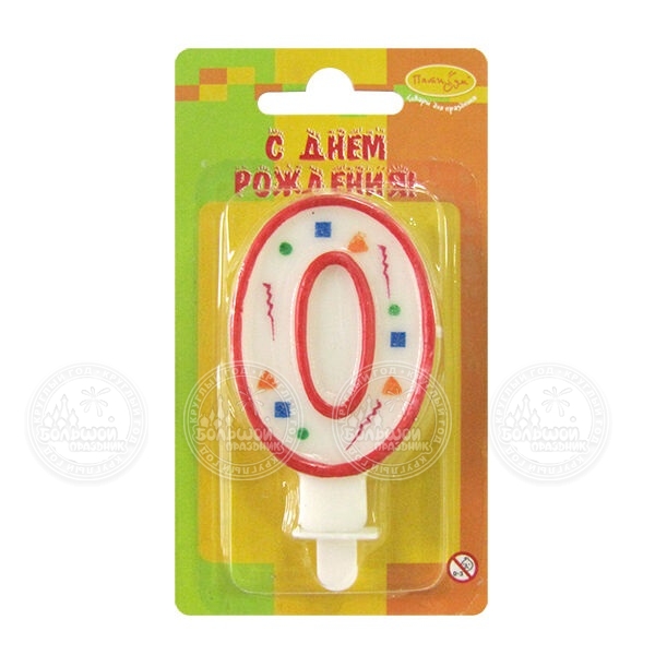 / Свеча Цифра 0 Голубое конфетти