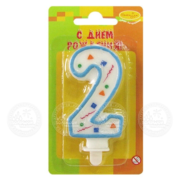 / Свеча Цифра 2 Голубое конфетти