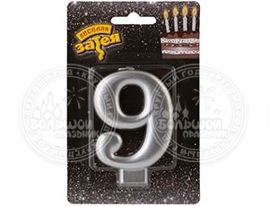 Декоративное украшение стола. Серебряная Свеча в форме цифры "9". Отличное решение для декорирования торта, десерта ко дню рождения или юбилею. Стеарин, оригинальный дизайн. Высота свечи-цифры 8см.1 шт.